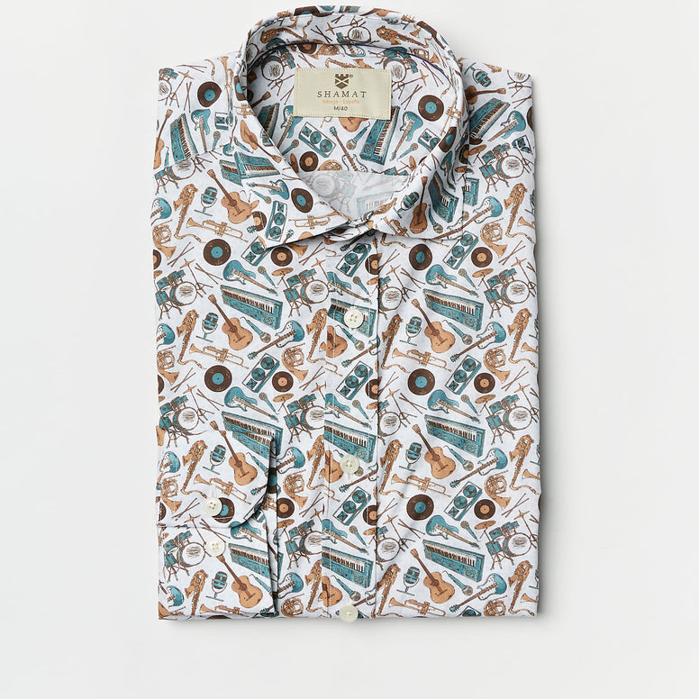 Estampado con motivo de instrumentos musicales.