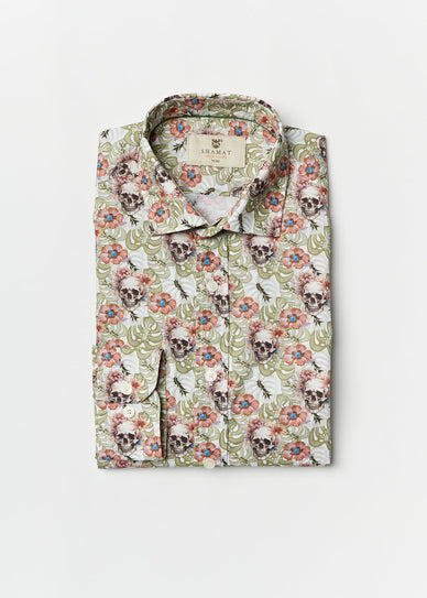 Estampado con motivo de calaveras y flores.